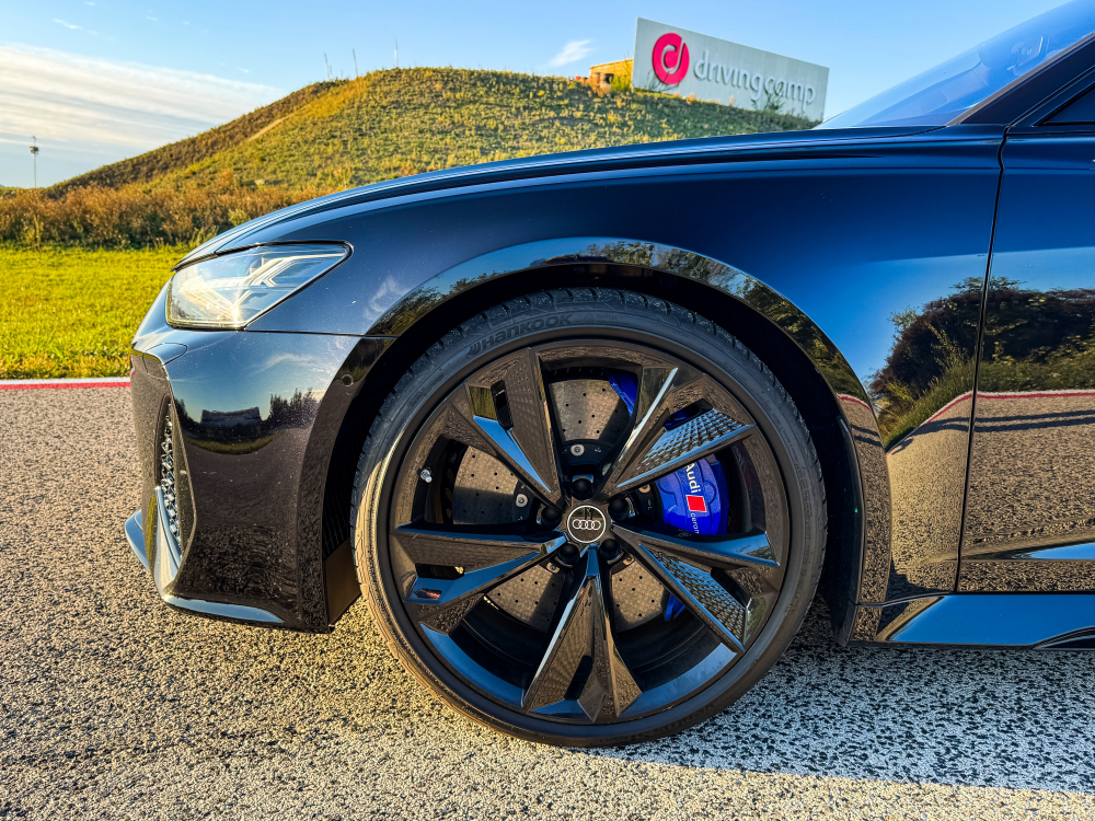Az RS 6 performance nem csak egyenes vonalban gyors. A fejlett quattro összkerékhajtás és a precíz, áttételes kormányzás, kiegészülve a tesztautó masszív kerámia fékjeivel, olyan magabiztos úttartást és fékerőt garantál, ami a szerpentinen is feledteti velünk, hogy egy kombiban ülünk. Mintha sínen húznák, rendíthetetlen stabilitással veszi a kanyarokat, a sofőrnek pedig csak annyi a feladata, hogy élvezze a fizika megcáfolását. Ez a gép tényleg egy igazi, kompromisszummentes csoda.