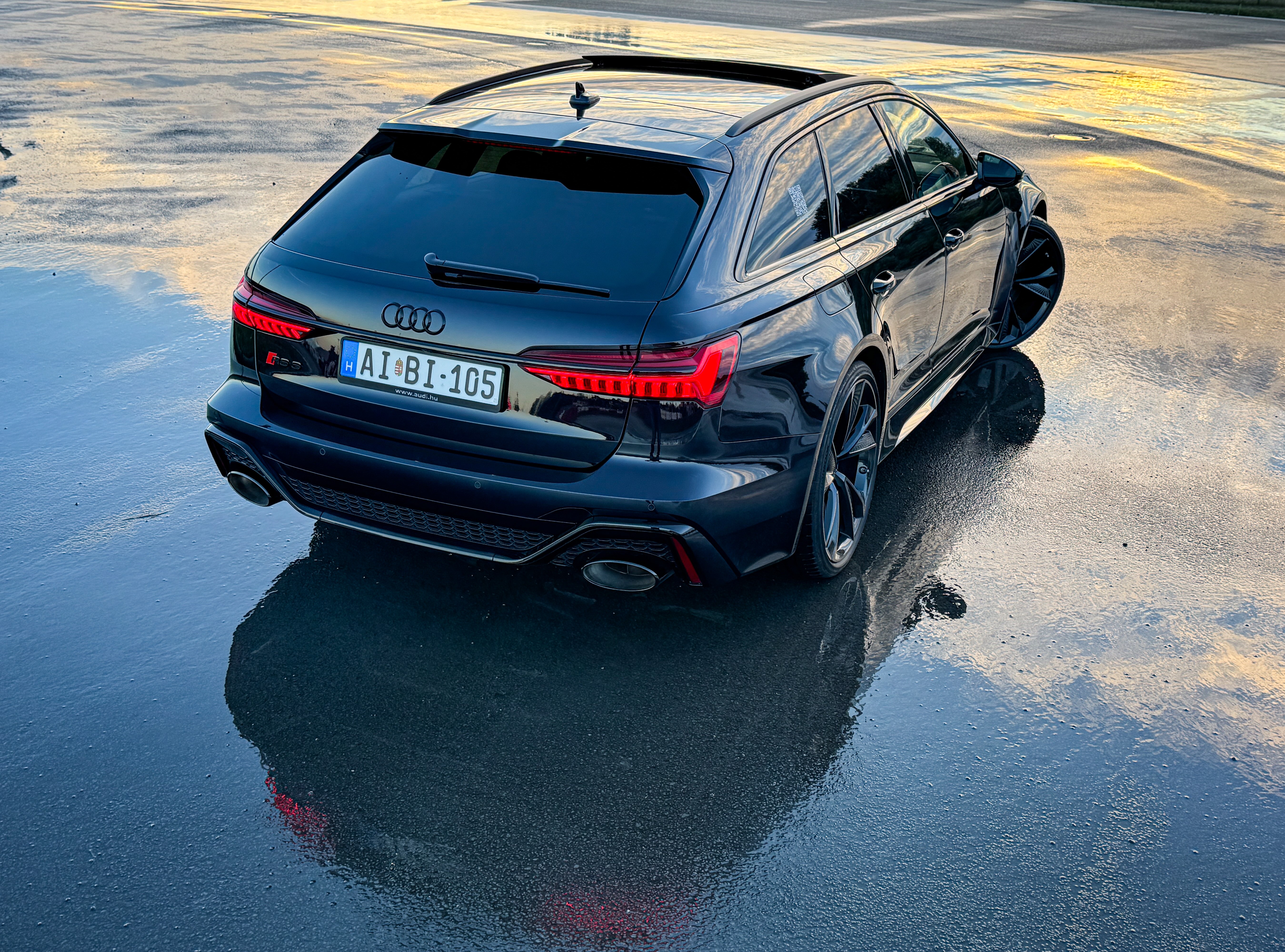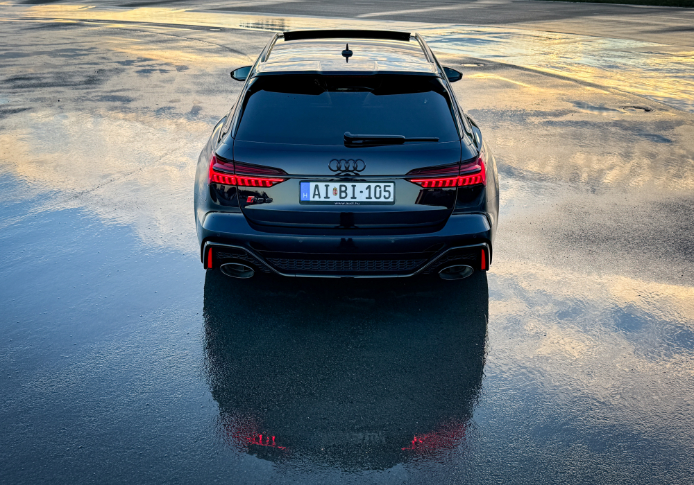 A kombik világa hagyományosan a praktikumról, a nagy csomagtartóról és a családi utazásokról szól. Aztán jött az Audi és megmutatta, hogy a funkcionalitásnak nem kell unalmasnak lennie, sőt, lehet a legizgalmasabb dolog a garázsban. Az Audi RS 6 performance nem egyszerűen egy sportkombi, hanem egy négykerekű kijelentés arról, hogy a sebesség és a stílus tökéletesen megfér a hétköznapi használhatósággal. A tesztelt példány pedig, Sebring-fekete kristályfényezéssel, teljes Shadow Line extracsomaggal és kerámia fékekkel felszerelve, a vonzerő csúcsát képviselte. Ez a sötét, fenyegető elegancia egyszerűen hipnotikus.