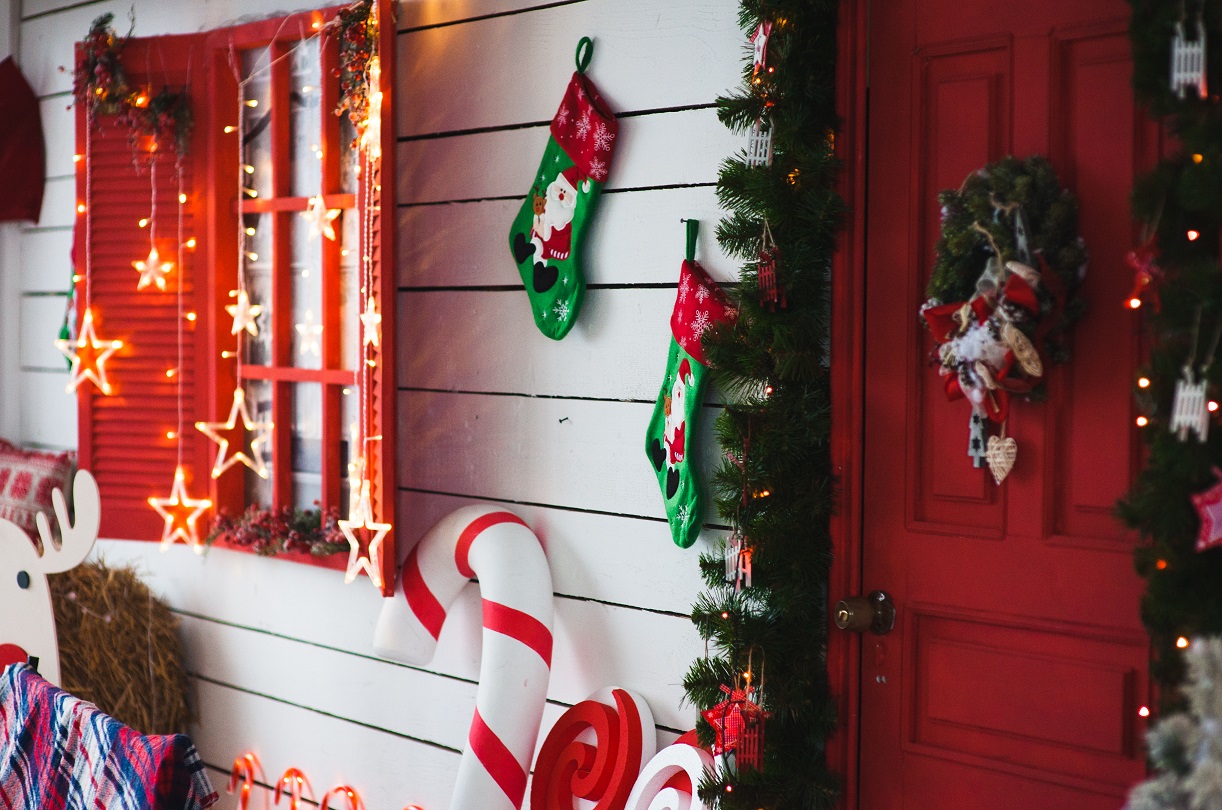 Az egyedi ajtókopogtatók, cukorpálcák, gömbök és hatalmas masnik látványosan keretezik a bejáratot. Újdonságként megjelennek a karácsonyi ajtónálló dekorok is – többek között kedves manók vagy rénszarvasok formájában. A vendégváró dekoráció slágere pedig a bohókás óriáscsésze, amit különböző karácsonyi díszekkel, figurákkal, apró fényekkel dekorálhatunk. Sok más mellett akár ezt is elkészíthetjük házilag. A gyors megoldások híveinek ugyanakkor kapóra jöhetnek a készen kapható, felfújható karácsonyi gömbök és figurák, amelyekkel percek alatt feldobható az előtér.