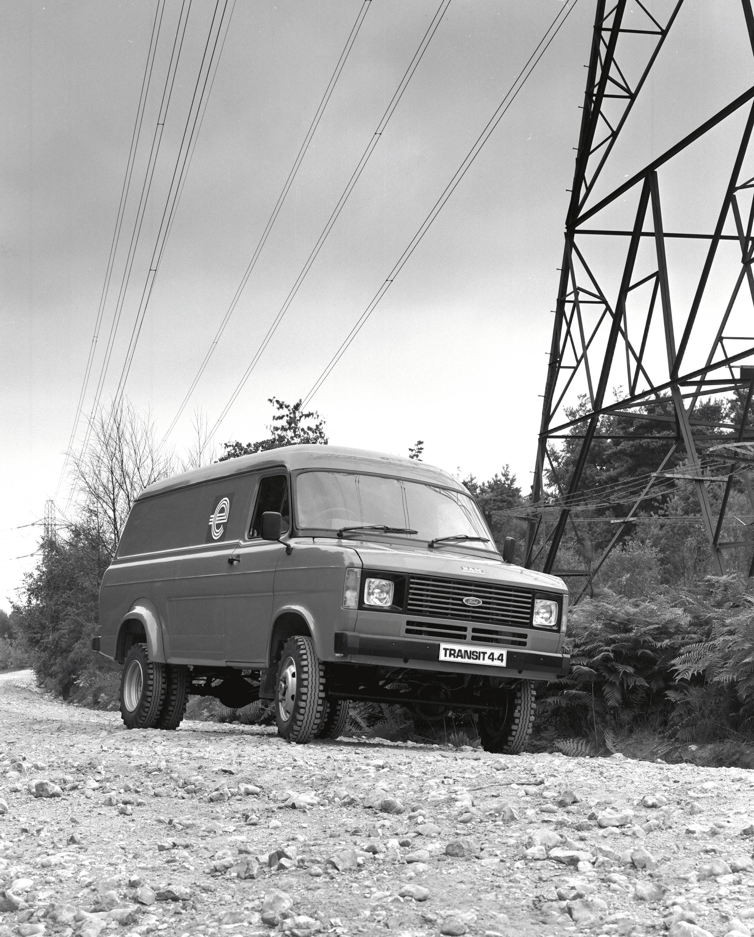 1982-ben a Ford egy kemény 4x4-es Transitot épített. Az extra hasmagasságú modell hamar népszerű lett a közműcégeknél és sok más felhasználónál, akiknek fontos volt, hogy bármilyen terepviszonyok mellett el tudják végezni a munkájukat.