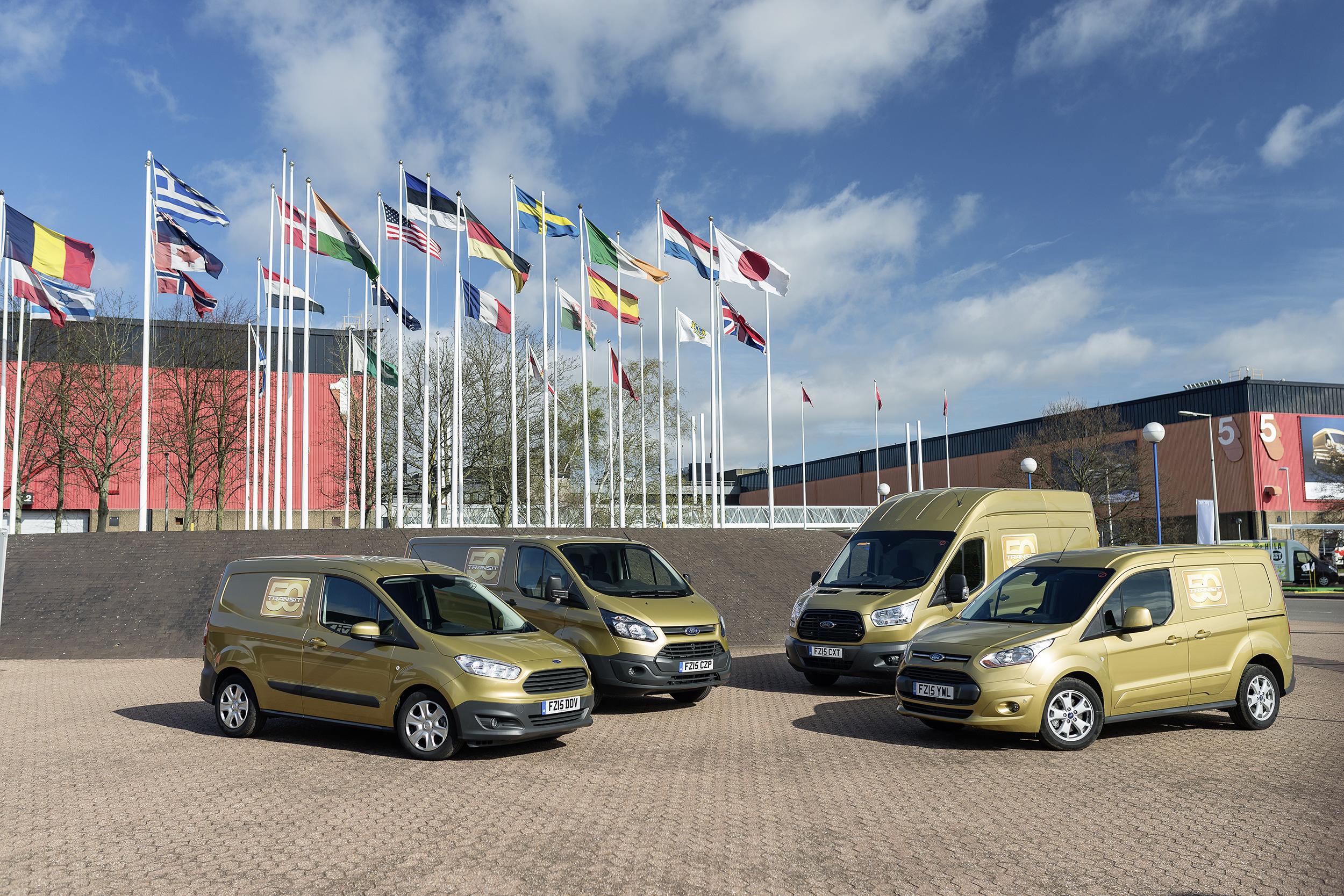 Miután a Transit 50 éven át hű társa volt a világ minden táján működő vállalkozásoknak, ez a négy arany Transitból álló konvoj hónapokig járta az Egyesült Királyságot, beharangozva a 2015. augusztus 9-i hivatalos Transit-évfordulót.
