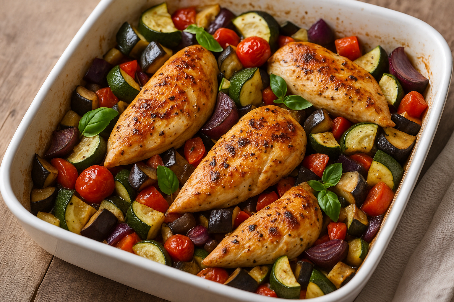 Könnyű mediterrán csirkés zöldségtál – ha valami egészségesre és gyorsra vágysz