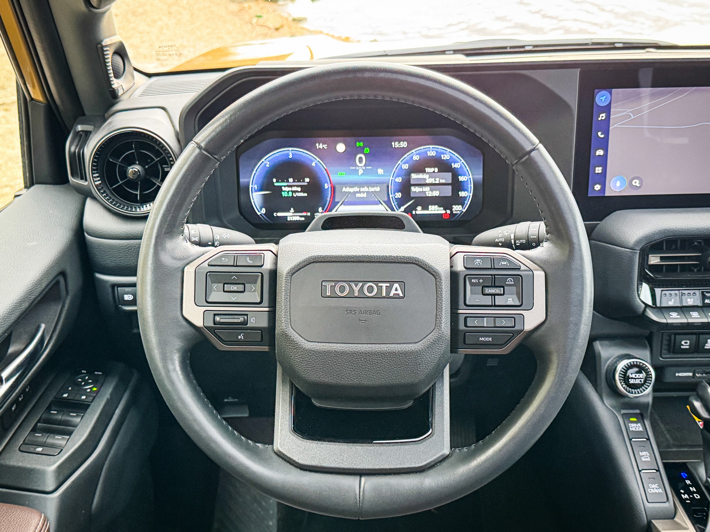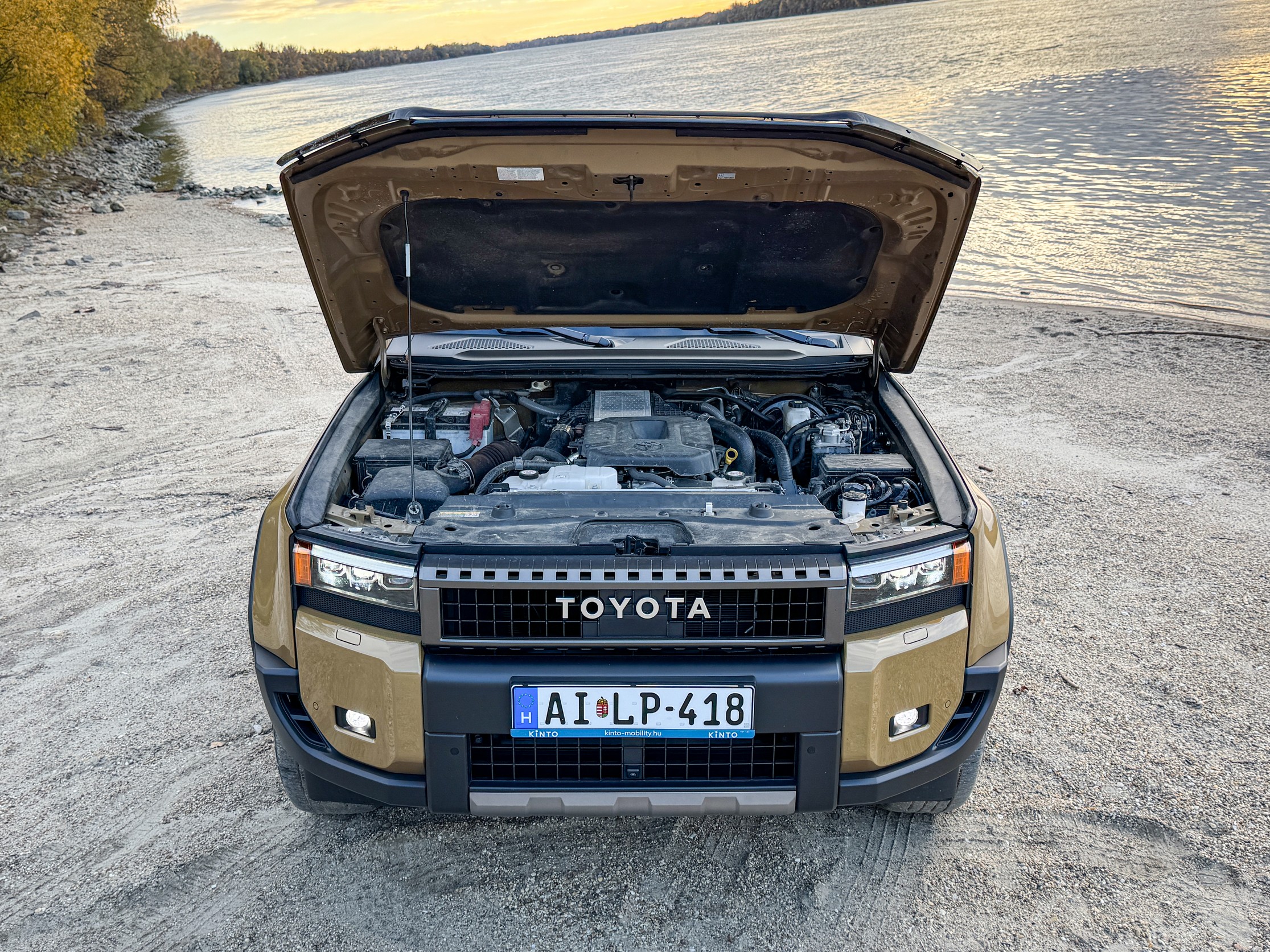Elsőre talán meglepő lehet, de a 2,8 literes turbódízel motor mindössze 204 lóerőt (150 kW) teljesít. A mai számokhoz képest ez abszolút nem hangzik soknak, különösen, ha figyelembe vesszük a Land Cruiser közel 2500 kg-os saját tömegét. A meglepetés azonban a gyakorlatban jön: a motor megdöbbentően jól mozgatja a hatalmas karosszériát! A bőséges nyomaték és a finoman kapcsoló 8 fokozatú automata váltó tökéletes összhangja biztosítja, hogy se autópályán, se terepen ne érezzük a teljesítmény hiányát.
