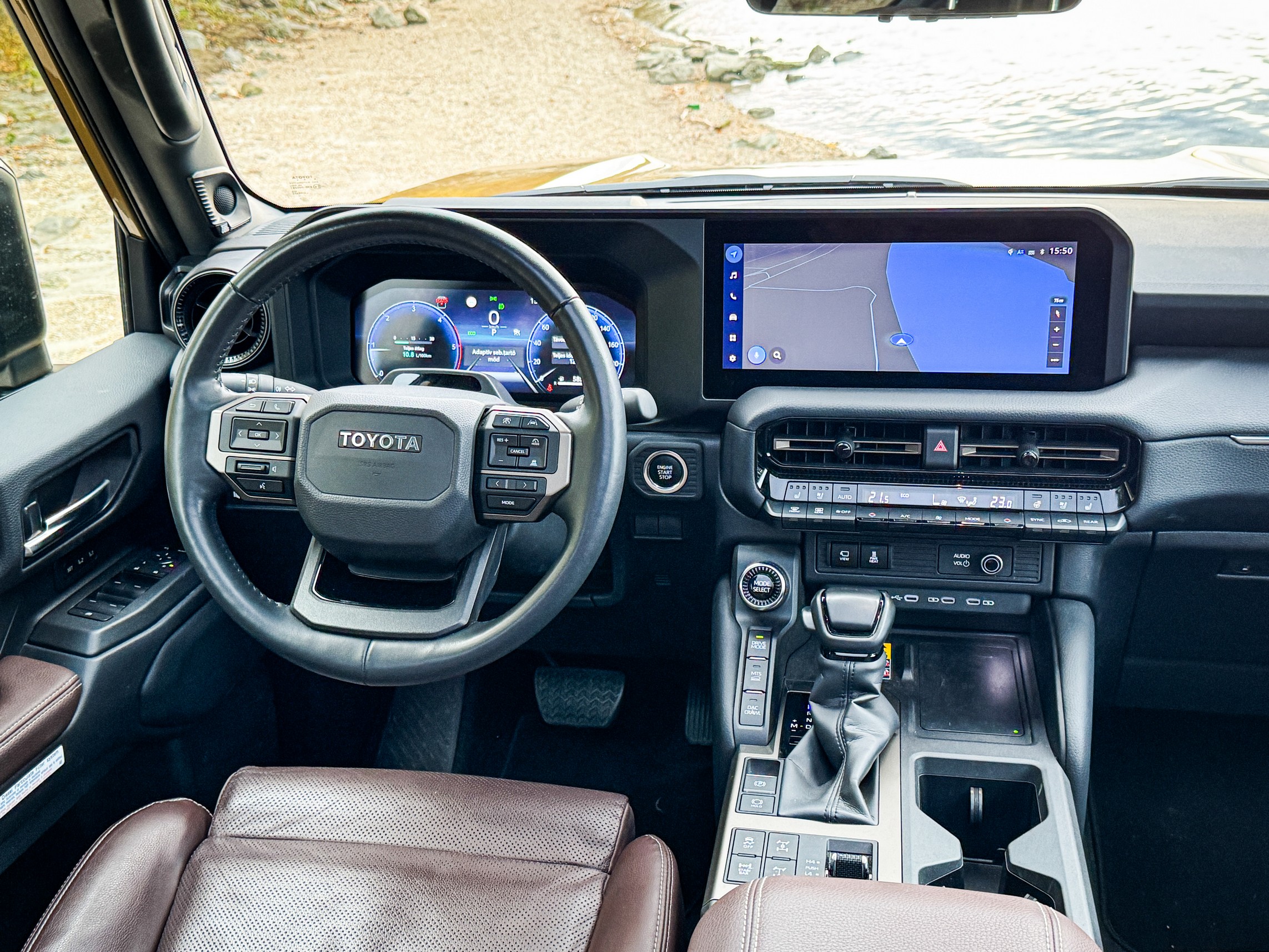 A Land Cruiser belső tere már önmagában is felüdülés, de ami a funkciókat illeti, az maga a Kánaán. Szinte minden fontos beállításra dedikált, fizikai gomb áll rendelkezésre. Lássuk be, ez hatalmas előny! Nem kell a menü mélységeiben kutatni, ha terepen gyorsan kell kapcsolni a differenciálzárat, vagy éppen beállítani a klímát. A klasszikus, megfogható kezelőszervek tapinthatósága egyben a kontroll és a megbízhatóság érzetét is adja.