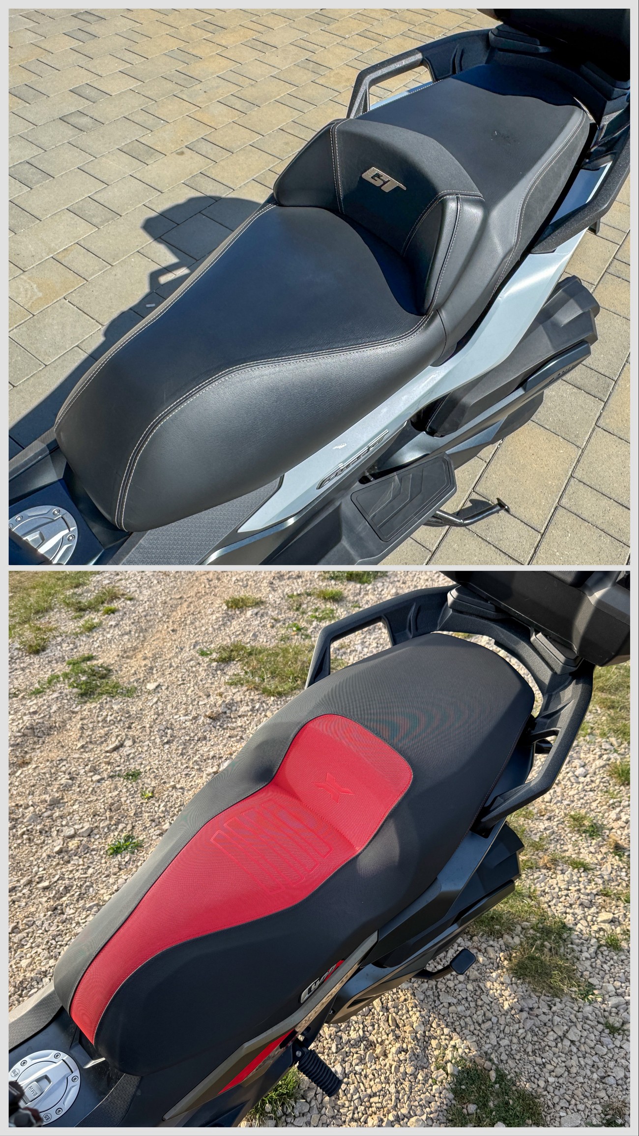 A C400GT és a C400X Rugged között a legszembetűnőbb különbség a formatervben rejlik, ami közvetlenül a felhasználási területet is meghatározza. A BMW C400GT a Gran Turismo nevéhez hűen az elegancia és a kényelem jegyében született. Széles, áramvonalas idomzata kiváló védelmet nyújt a szél és az időjárás viszontagságai ellen. Az állítható plexi, a széles lábvédő pajzs és a komfortos, deréktámlával ellátott ülés mind azt a célt szolgálja, hogy a hosszú utazások is fáradtságmentesen teljenek. Az utas kényelméről szintén gondoskodtak, a GT utasülése tágas és kényelmes, a doboz által biztosított háttámlája pedig extra stabilitást nyújt.