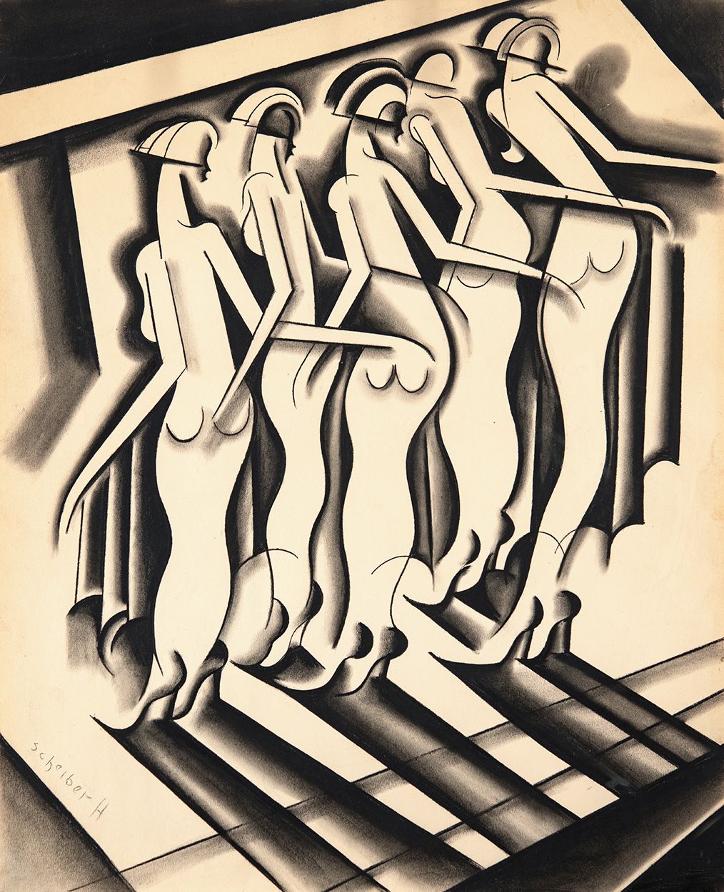 Scheiber Hugó az egyik legkeresettebb festő ma Magyarországon, pedig életében egy mappával a hóna alatt járta a pesti utcákat és az éjszakát, hogy vevőt találjon képeire. Scheiber szellemesen ragadta meg a nagyváros jellegzetes karaktereit, a villogó reklámokat, a gyorsuló városi közlekedést. A most aukcióra kerülő Táncosnők című alkotása bravúrosan ábrázolja a táncot, a mozgást, a pattogó ritmust egy olyan időszakból, amikor a jazz villámgyorsan terjedt, és Josephine Baker lázban égett a város. Scheiber alkotása 7,5 millió forintos kikiáltási árról indul.