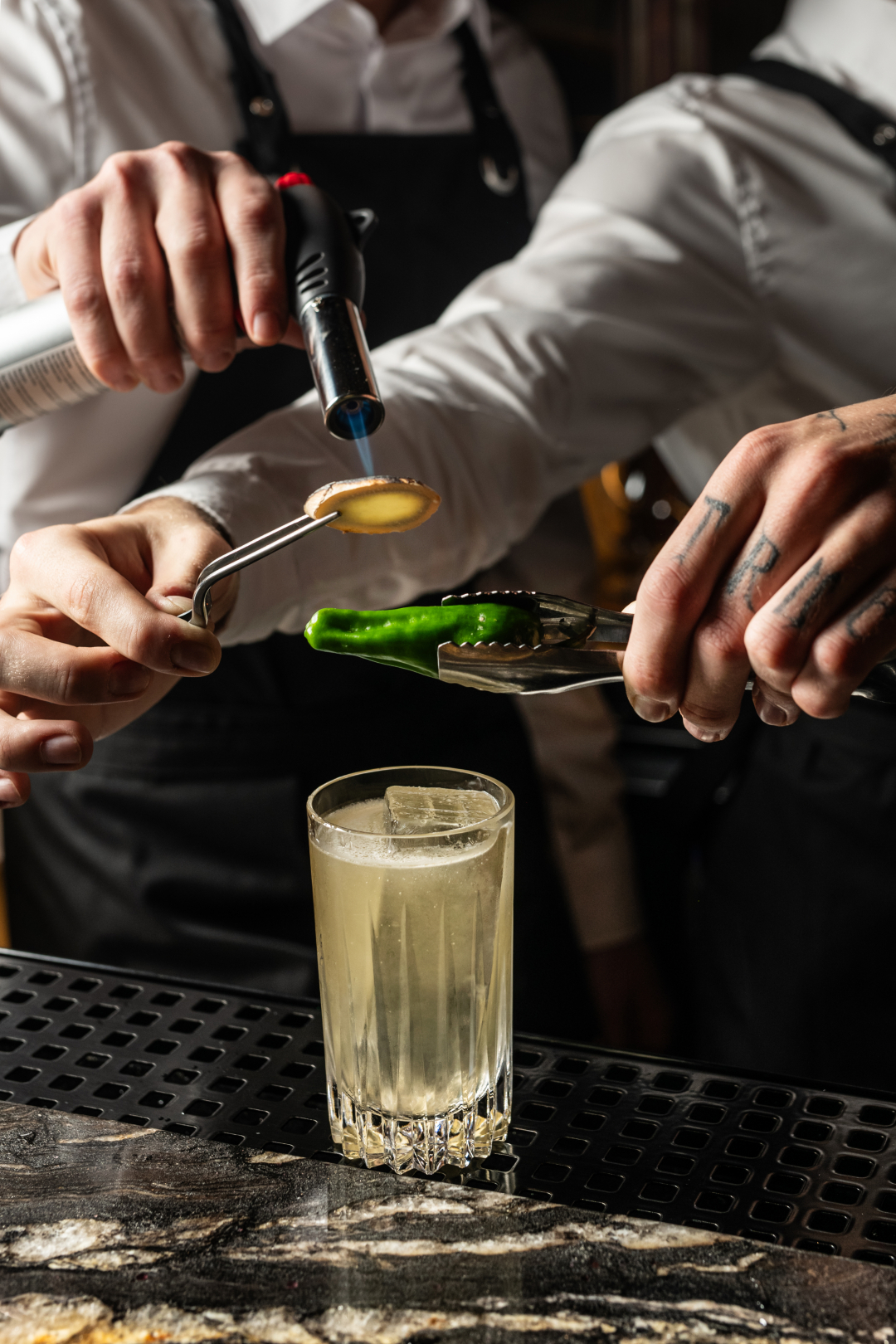 Az itallapon hat signature koktél szerepel, köztük a tengeri hajózás aranykorát idéző Golden Stash, ami a cognac új, könnyedebb arcát mutatja, míg frissen préselt alma, vanília, vetiver és ibolya adja a karakterét, amit fehércsokoládés habcsók koronáz. Az italok közül szintén kiemelkedik a bohém ¡Ay Padron! – az ital temperamentumát a Penja bors és gyömbér likőr adja, az égetett padron paprika és karamellizált gyömbér öltözteti igazán karakteres külsőbe és határozza meg felejthetetlen illatát. A signature italokon túl a koktéllap „Classic with a roar” jelölése négy meghatározó klasszikust újragondolt formában mutat be.